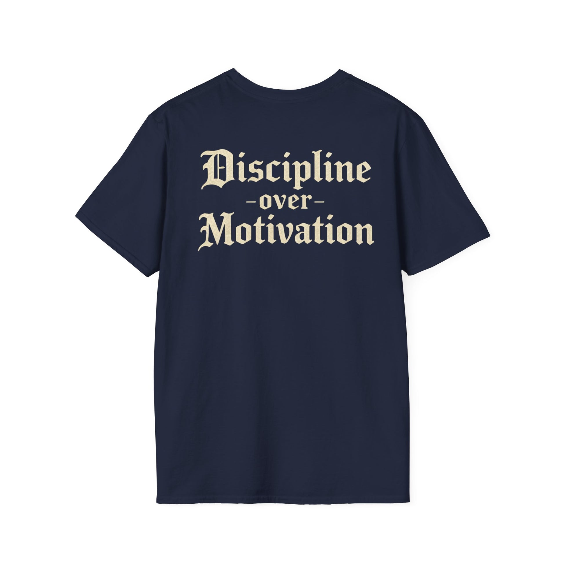 This tee carries a quiet confidence. Soft, smooth cotton and a clean crew neckline make it comfortable for long days of work, training, or travel. The front chest and bold back print read “Discipline over Motivation” in an old-style serif that feels sturdy and relentless — a small statement on the front, a declaration on the back. Wear it as a reminder to show up when inspiration fades: during early-morning lifts, late-night study sessions, or nights when the to-do list outlasts your energy. It pairs easily with worn denim or gym shorts and layers under a jacket without adding bulk. Ethically made and lightweight, it becomes part of the routine rather than the noise.
